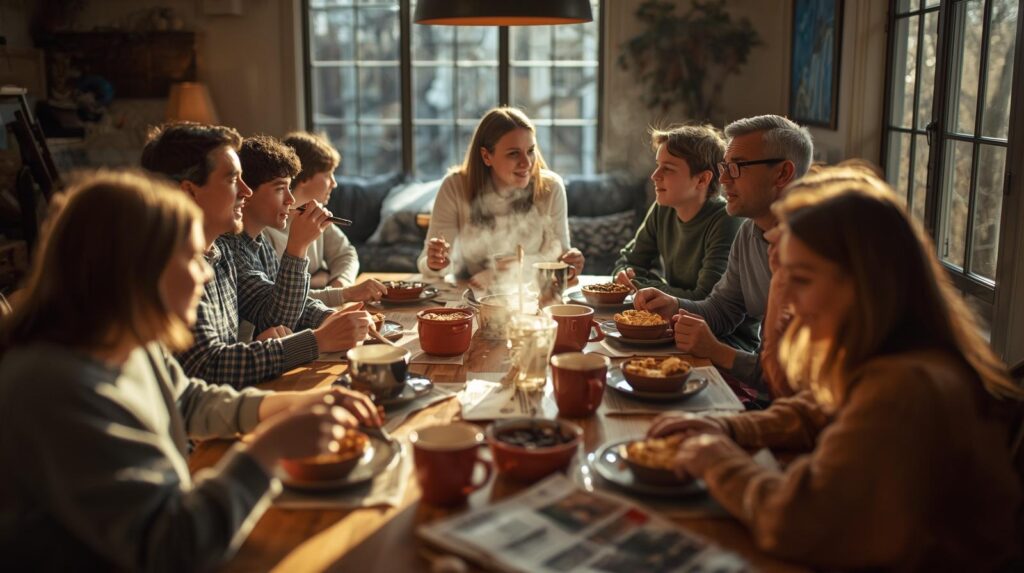 Nasze spotkania rozpoczynamy od wspólnego śniadania i swobodnych rozmów, budując relacje i tworząc rodzinną atmosferę. Po tym czasie dzieci w wieku 2–15 lat udają się na przygotowane dla nich zajęcia dostosowane do wieku, a dorośli pozostają na nauczaniu opartym na Biblii.